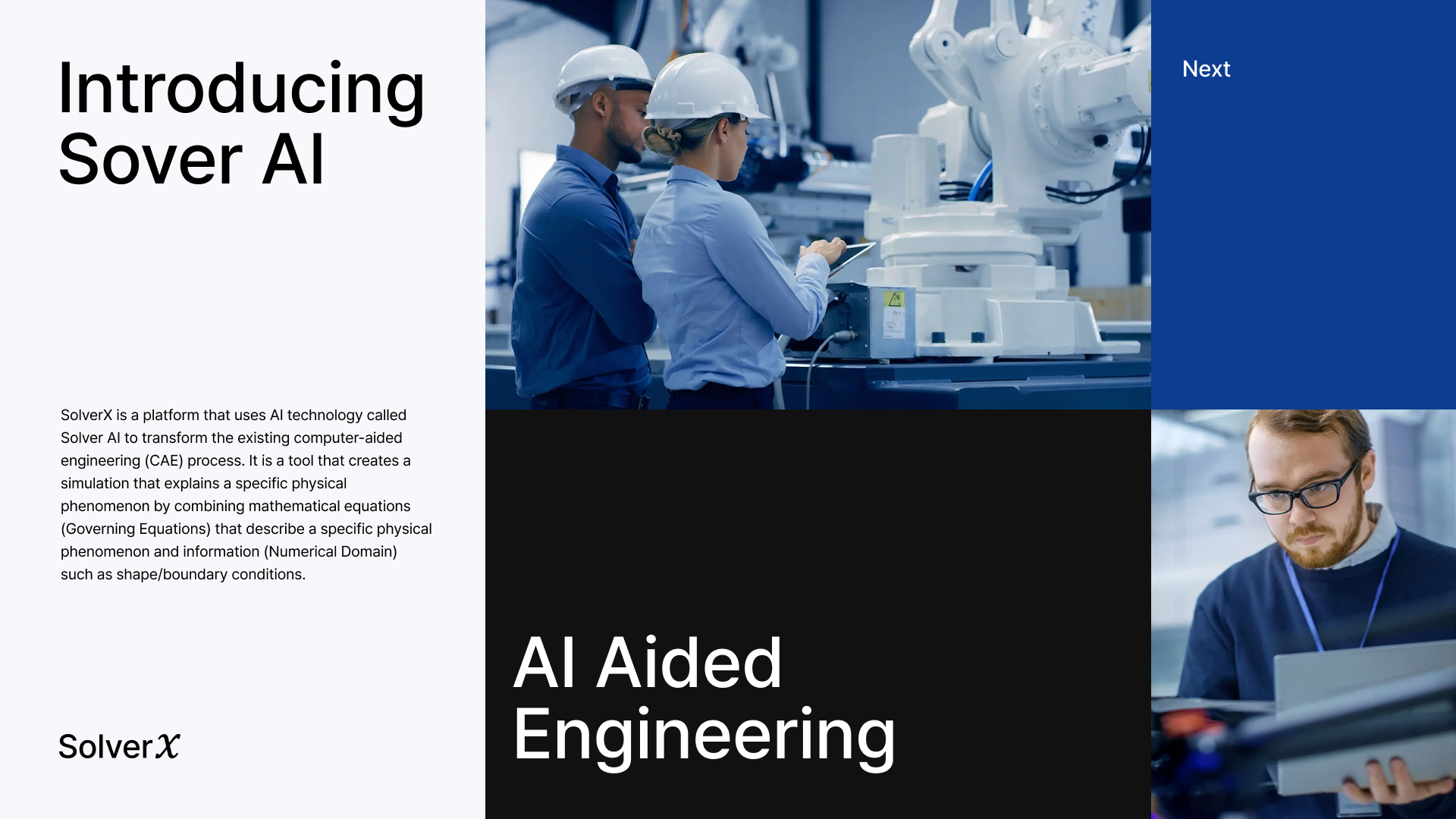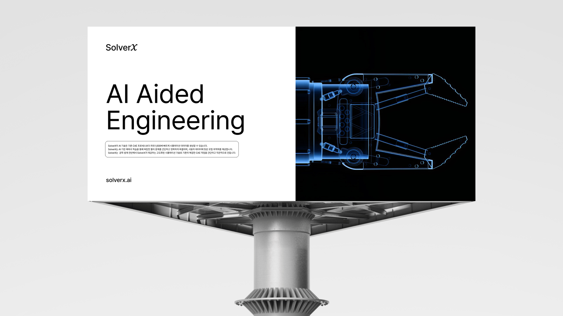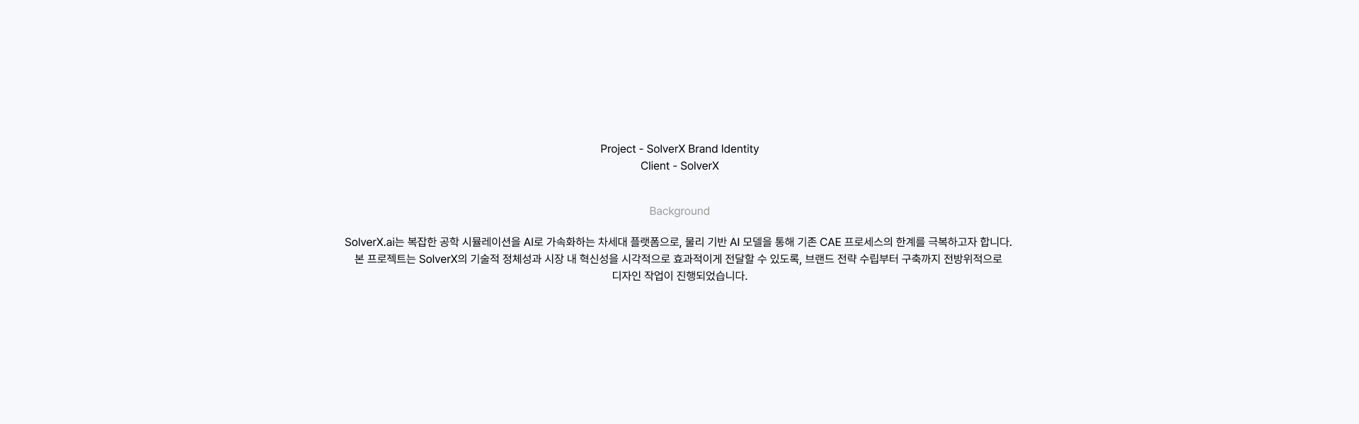 Client : SolverX Inc. Scope : Brand Identity, Web Design Year : 2025 SolverX.ai is an AI-driven platform that accelerates complex engineering simulations by orders of magnitude. Leveraging physics-based AI models, SolverX aims to break the limitations of conventional CAE processes. Our studio collaborated with SolverX to provide comprehensive branding and digital product design, from strategic brand development to website design.