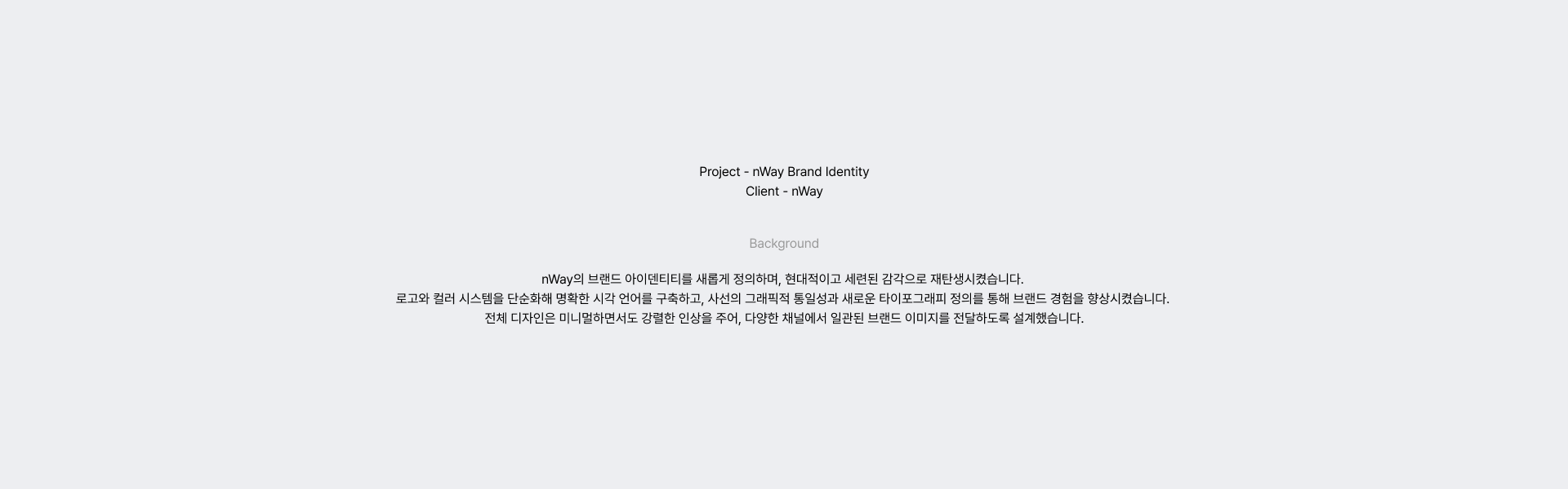 Client : nWay Scope : Brand Identity Year : 2023 nWay is a game development and publishing company that offers blockchain-based games and NFT (Non-Fungible Token) services. Its notable titles include NFT and Play-to-Earn games such as Olympic Games Jam. As a subsidiary of Animoca Brands, nWay operates a platform that integrates gaming with NFTs, featuring digital asset trading, collecting, and rewarding.